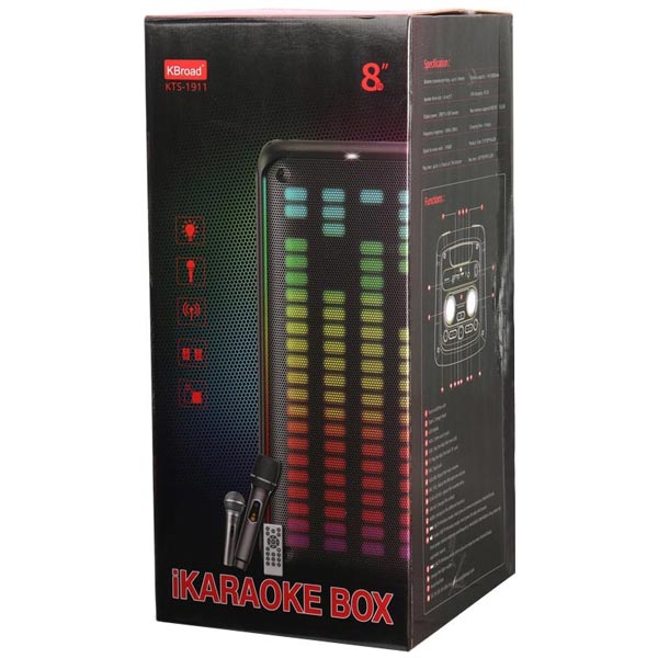 اسپیکر KTS1911 از رابطهای متنوعی شامل جک ۳٫۵ میلیمتری صدا، USB، بلوتوث و AUX پشتیبانی میکند. برد اتصال بلوتوث آن تا 10 متر است و امکان پخش موسیقی از کارت حافظه Micro SD و فلش مموری USB تا ظرفیت 32 گیگابایت را نیز دارد. اگر علاقهمند به کارائوکه هستید، این اسپیکر با پشتیبانی از این قابلیت و درگاه یک میکروفون همراه با دو عدد میکروفون در بستهبندی، بهترین گزینه برای شماست.