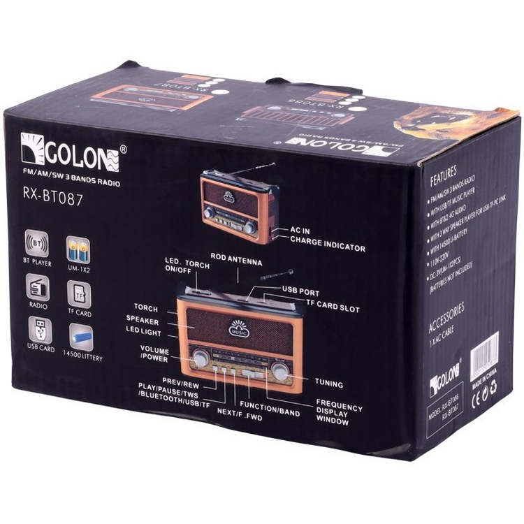 رادیو اسپیکر بلوتوثی Golon RX-BT087 با ظاهری شبیه به رادیوهای قدیمی اما با امکانات مدرن طراحی شده است. بنابراین، هم برای علاقهمندان به طراحیهای نوستالژیک و هم برای کاربران مدرن جذاب خواهد بود. علاوه بر این، وزن مناسب آن حمل و نقل را بسیار آسان کرده است.